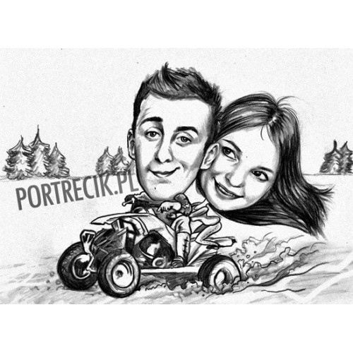 Pomysł karykatury dla pary - tutaj przedstawionej na quadzie.