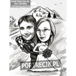 Karykatura biurowa - kobiety siedzącej przy biurku przy komputerze. Karykatura zrealizowana dla prawcownicy biura, jednak projekt pasuje także na karykaturę urzędnika lub urzędniczki, sekretarki itp.