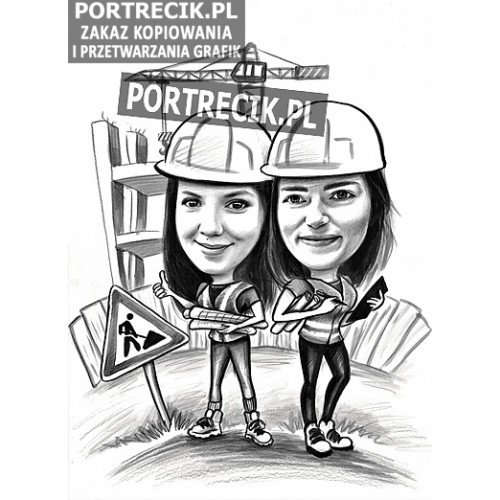 Karykatura inżyniera na placu budowy. Idealny pomysł na prezent - karykaturę dla inżyniera / budowlańca / architekta