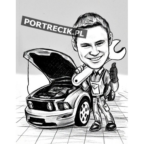 Karykatura mechanika samochodowego